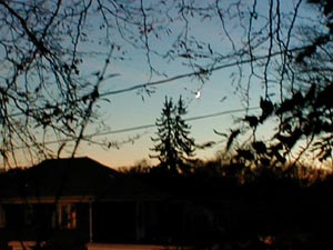 Winter moon as seen the front yard. |